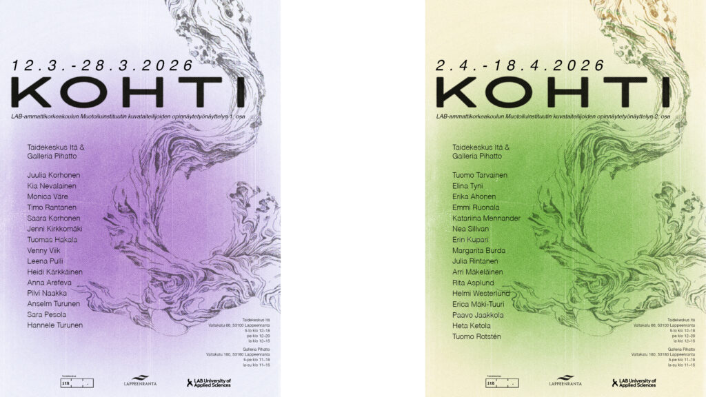 ROIKKA & RIUTTA – LAB-kuvataiteilijoiden opinnäytetyönäyttelyt — Kohti — Osa 1: 12.-28.3.2026 Osa 2: 2.-18.4.2026